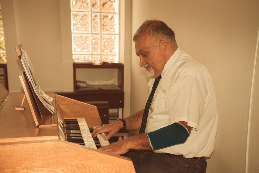 Bosniak pianist playing at the Catholic church, 1990-2018