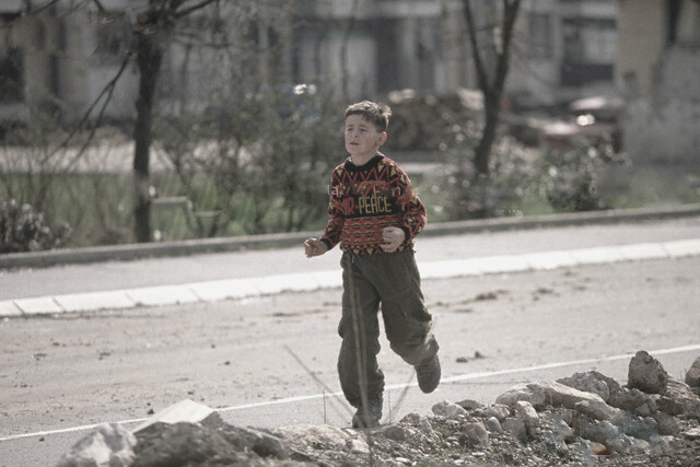 Children in the ruined bazaar in 1993