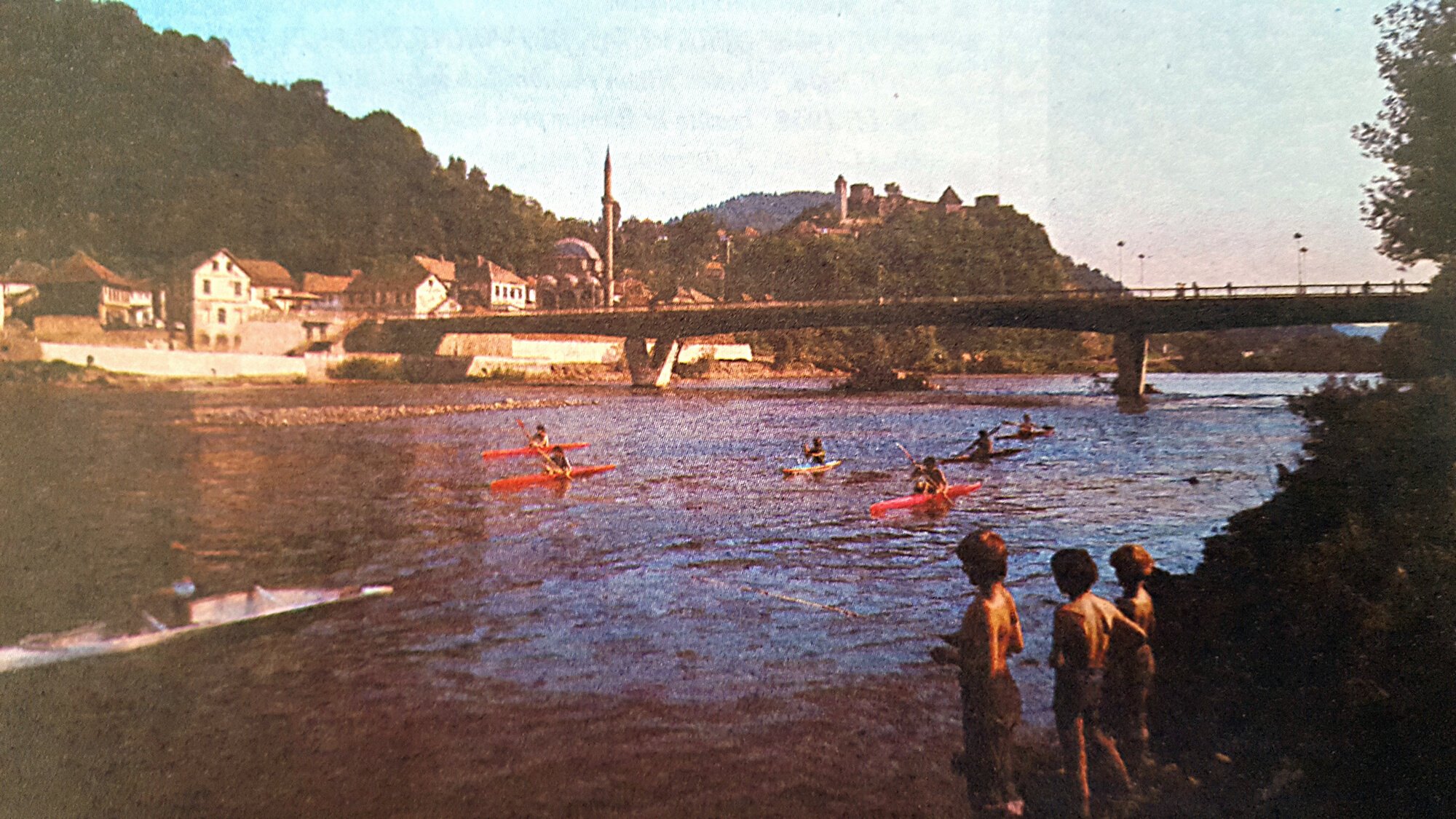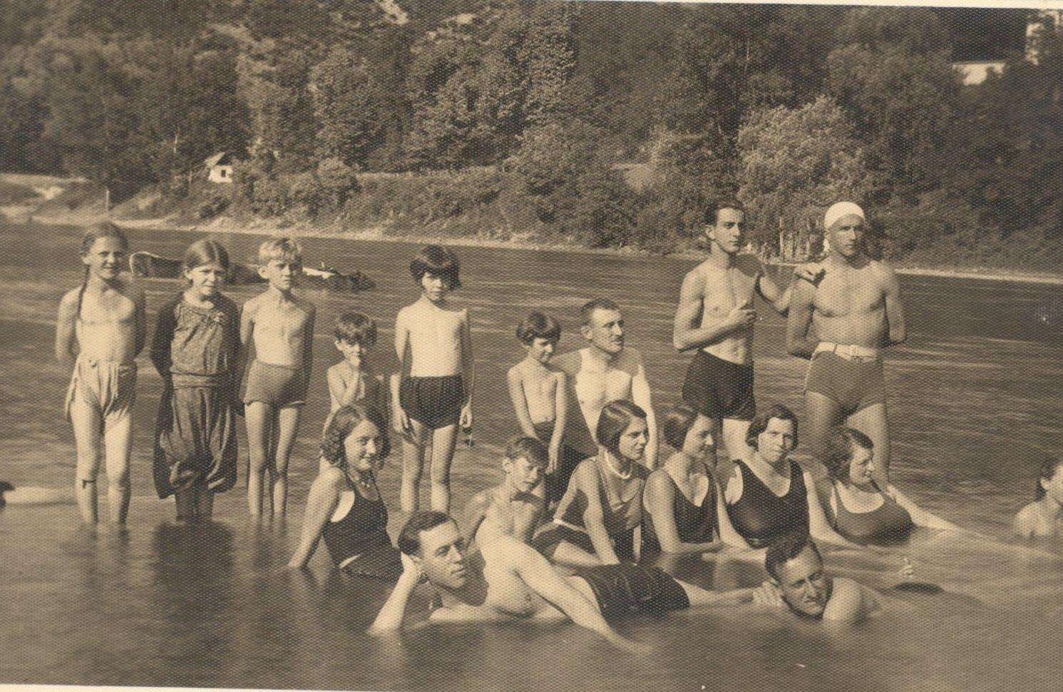 Bathing of the Božić family on the banks of the Bosna river under the fortress in 1918